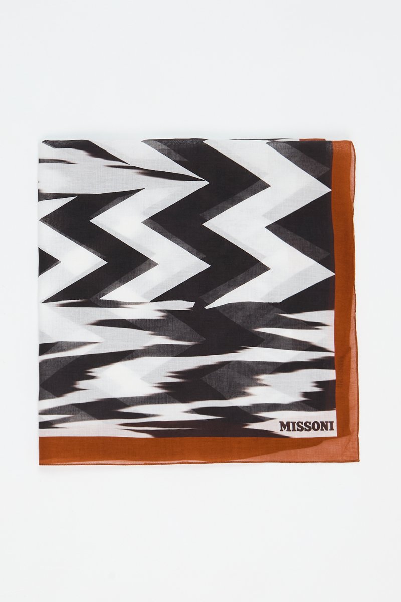 Connue pour sa maille et ses rayures chamarrées, la marque italienne Missoni égaie vos looks grâce à ses foulards, cravates et écharpes aux couleurs et motifs éclatants !