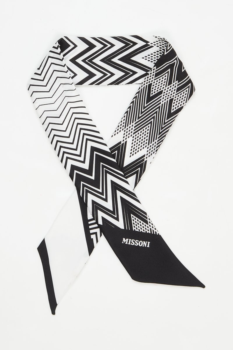 Connue pour sa maille et ses rayures chamarrées, la marque italienne Missoni égaie vos looks grâce à ses foulards, cravates et écharpes aux couleurs et motifs éclatants !