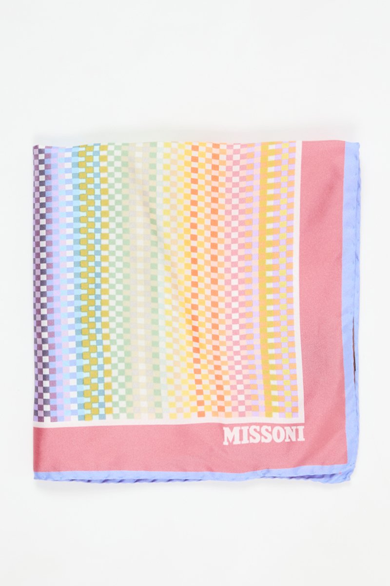 Connue pour sa maille et ses rayures chamarrées, la marque italienne Missoni égaie vos looks grâce à ses foulards, cravates et écharpes aux couleurs et motifs éclatants !