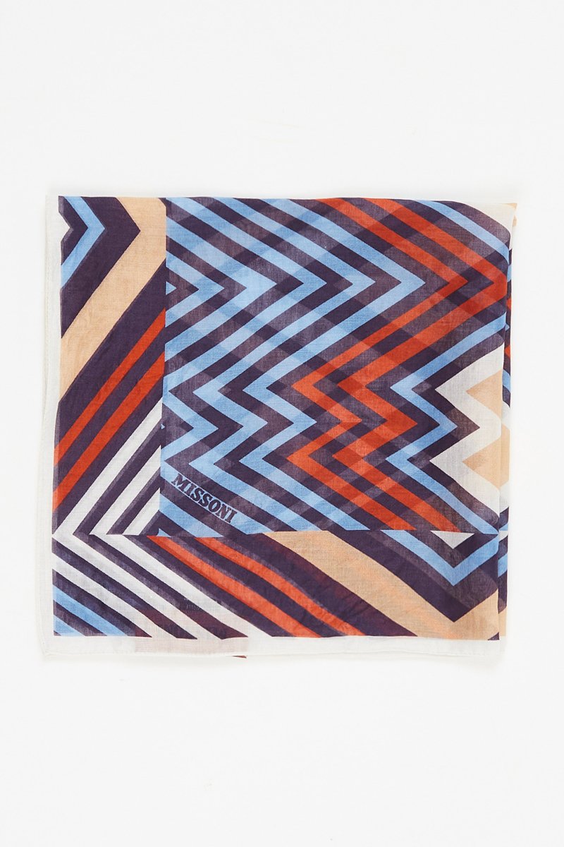 Connue pour sa maille et ses rayures chamarrées, la marque italienne Missoni égaie vos looks grâce à ses foulards, cravates et écharpes aux couleurs et motifs éclatants !