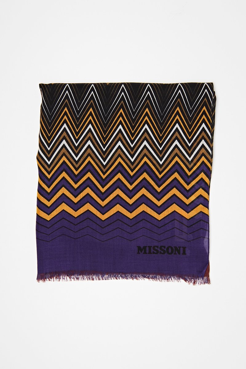 Connue pour sa maille et ses rayures chamarrées, la marque italienne Missoni égaie vos looks grâce à ses foulards, cravates et écharpes aux couleurs et motifs éclatants !