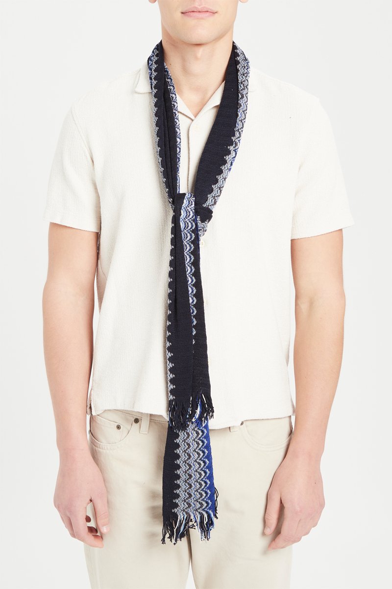 Connue pour sa maille et ses rayures chamarrées, la marque italienne Missoni égaie vos looks grâce à ses foulards, cravates et écharpes aux couleurs et motifs éclatants !