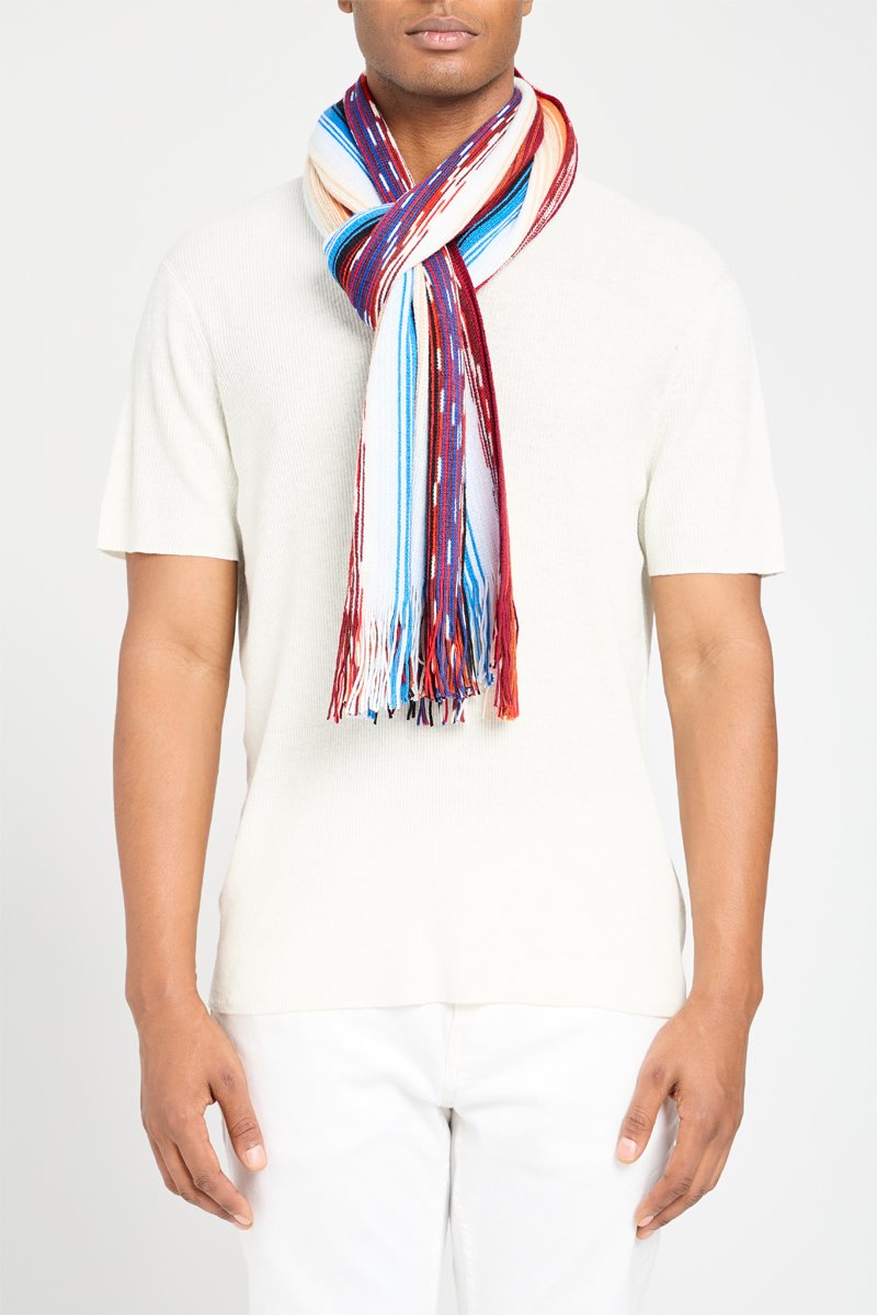 Connue pour sa maille et ses rayures chamarrées, la marque italienne Missoni égaie vos looks grâce à ses foulards, cravates et écharpes aux couleurs et motifs éclatants !