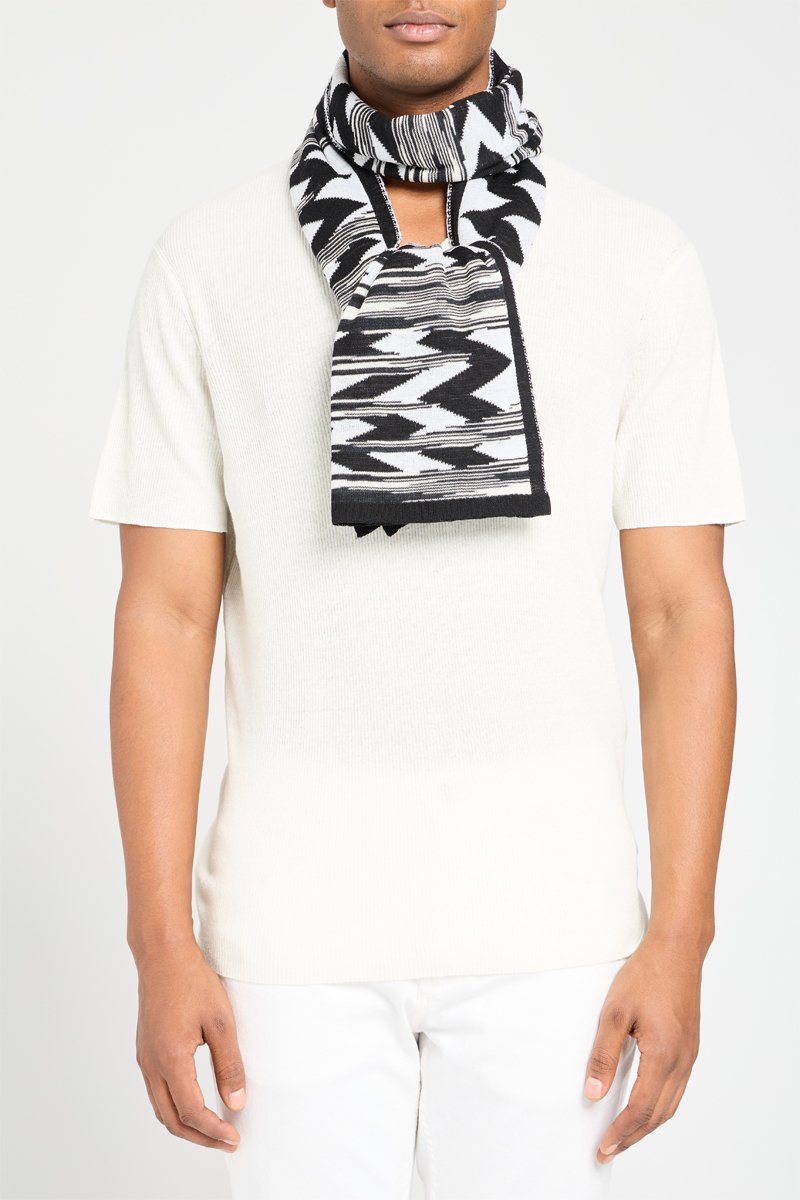 Connue pour sa maille et ses rayures chamarrées, la marque italienne Missoni égaie vos looks grâce à ses foulards, cravates et écharpes aux couleurs et motifs éclatants !