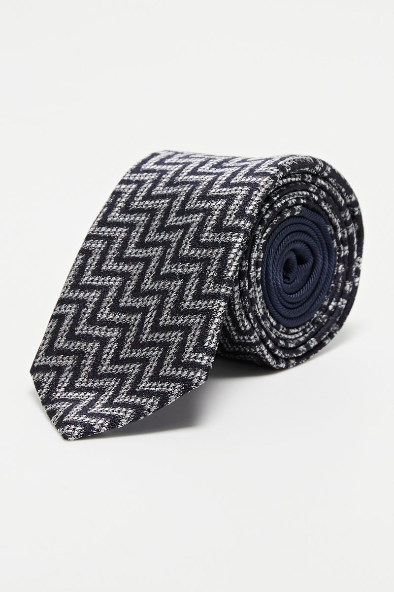 Cravate en soie - Ecru et bleu marine