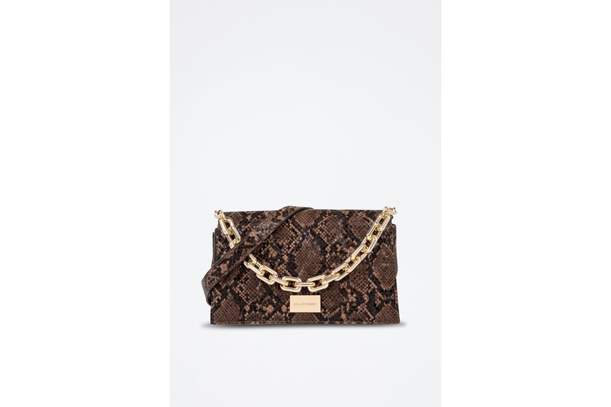 Le Leia Trio Compartment Bag - Rusty Snake - présente un design bicolore épuré et élégant avec un motif décoratif matelassé inspiré du serpent.