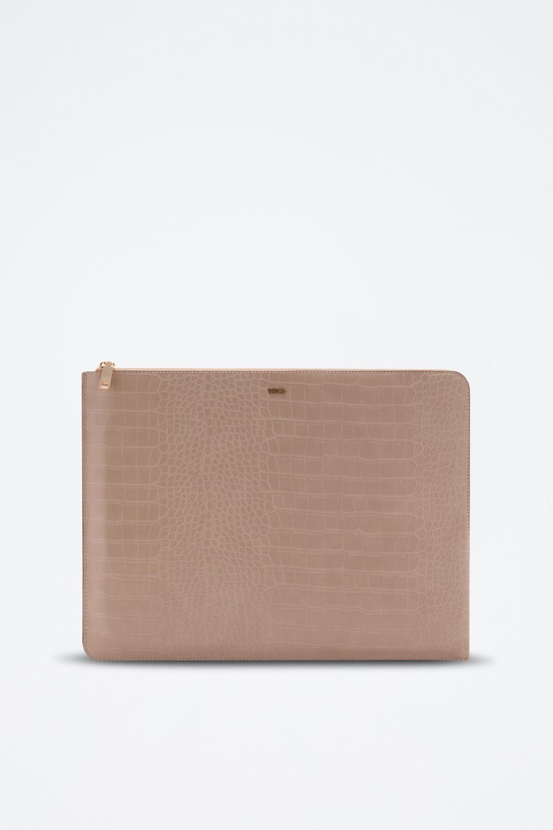 Housse ordinateur portable effet croco - Beige