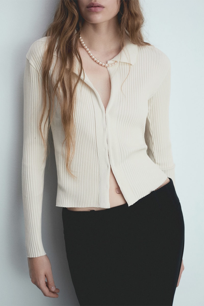 Cardigan maille côtelée fermeture agrafes - Écru