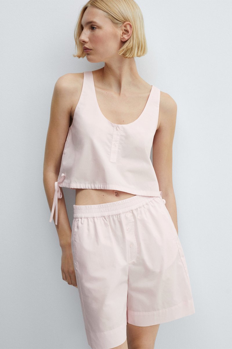 Crop top pyjama coton - Rose clair