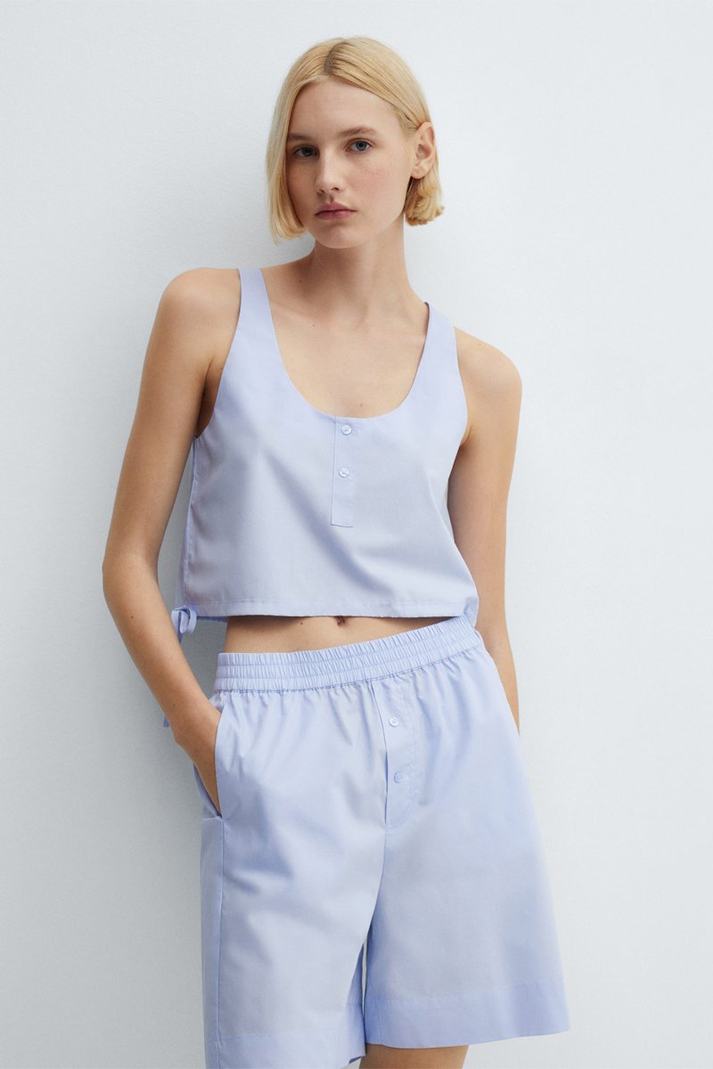 Crop top pyjama coton - Bleu