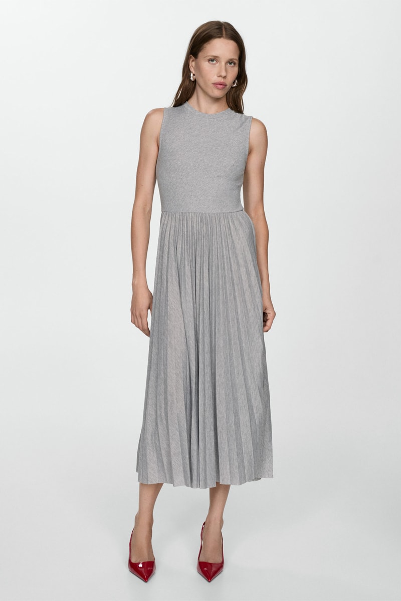 Robe longue plissée - Gris chiné