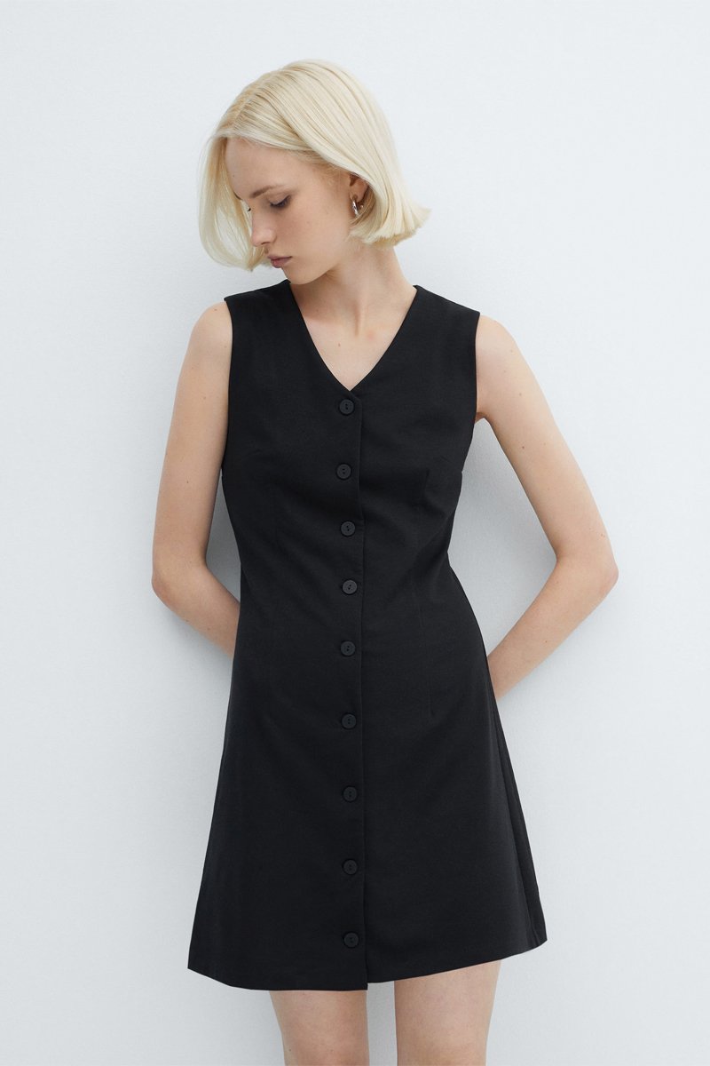 Robe courte boutonnée - Noir