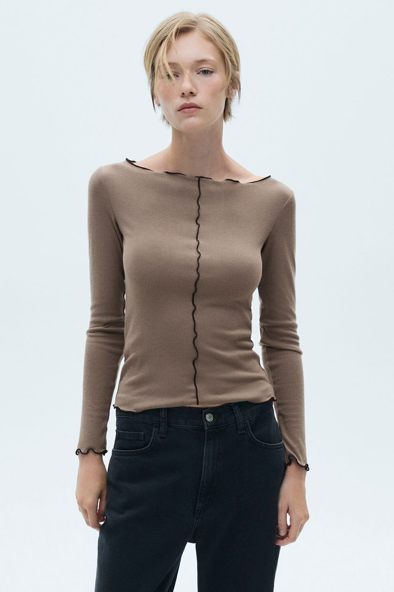 T-shirt manches longues coutures décoratives - Marron