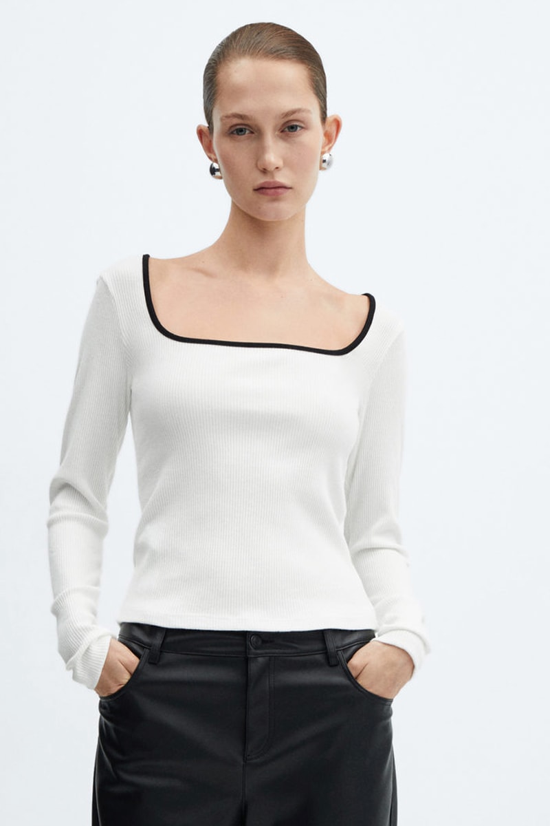 T-shirt côtelé col carré.