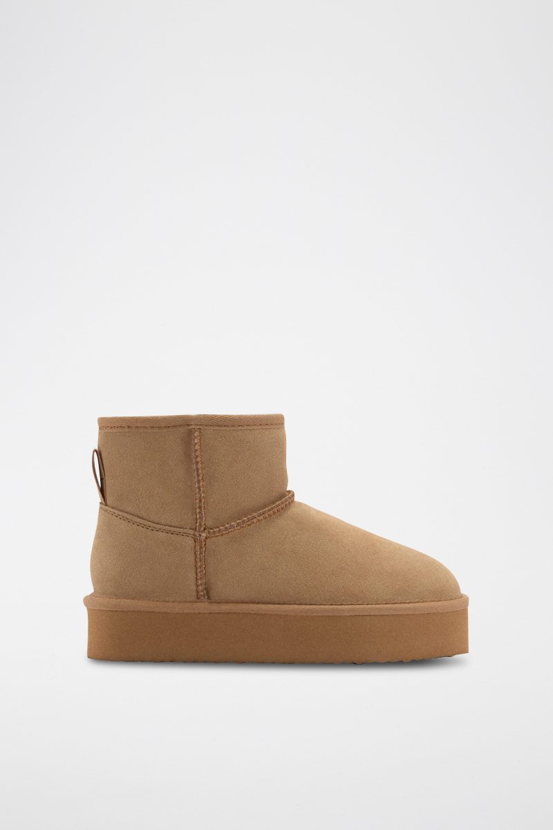 Bottines cuir doublées fourrure - Beige