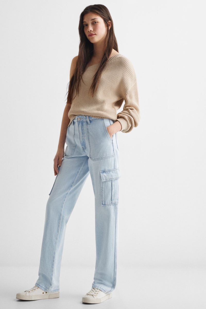Jean droit style cargo - Bleu clair