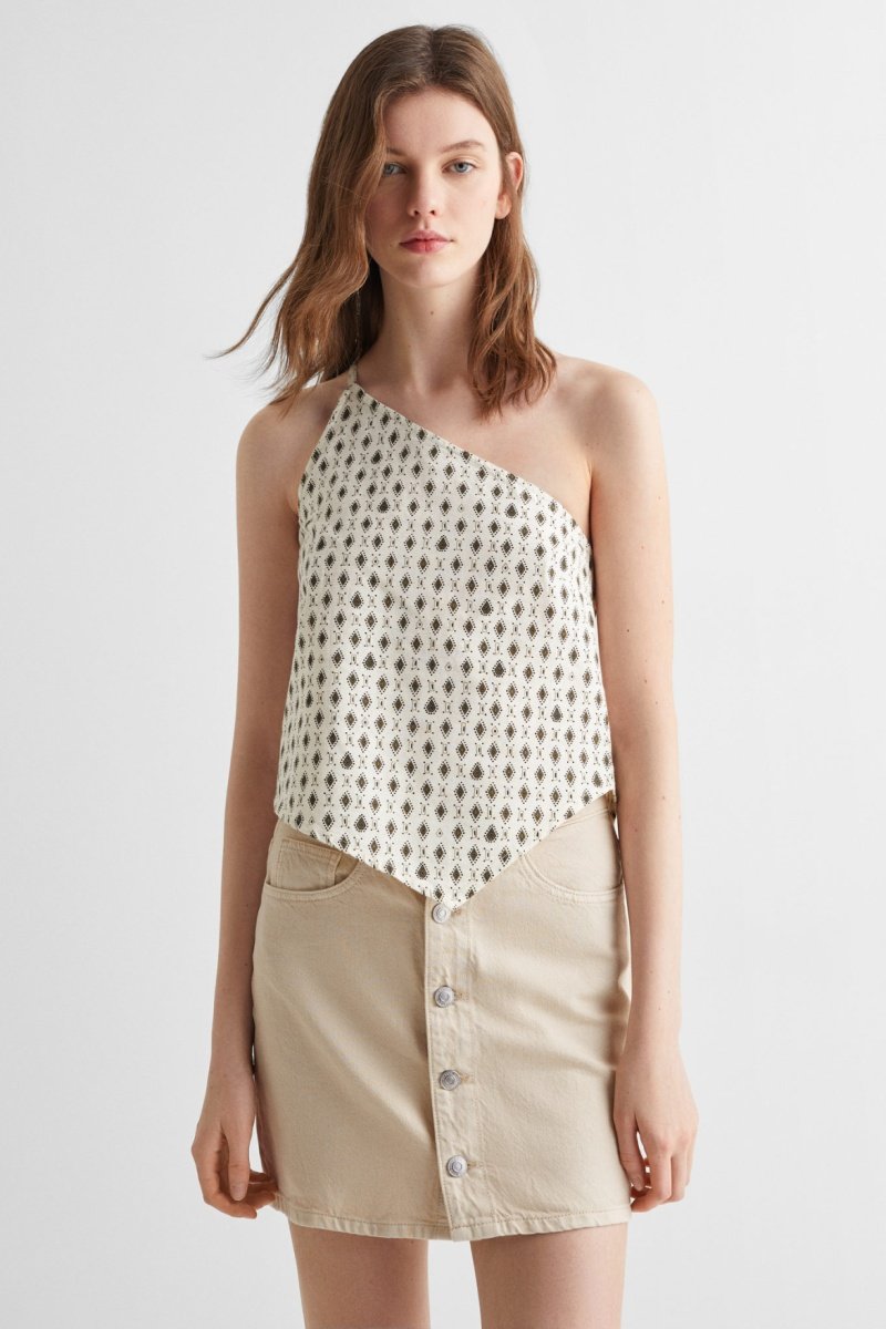 Top asymétrique imprimé - Blanc cassé