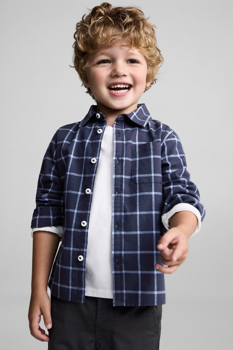 Chemise à carreaux en coton - Bleu marine