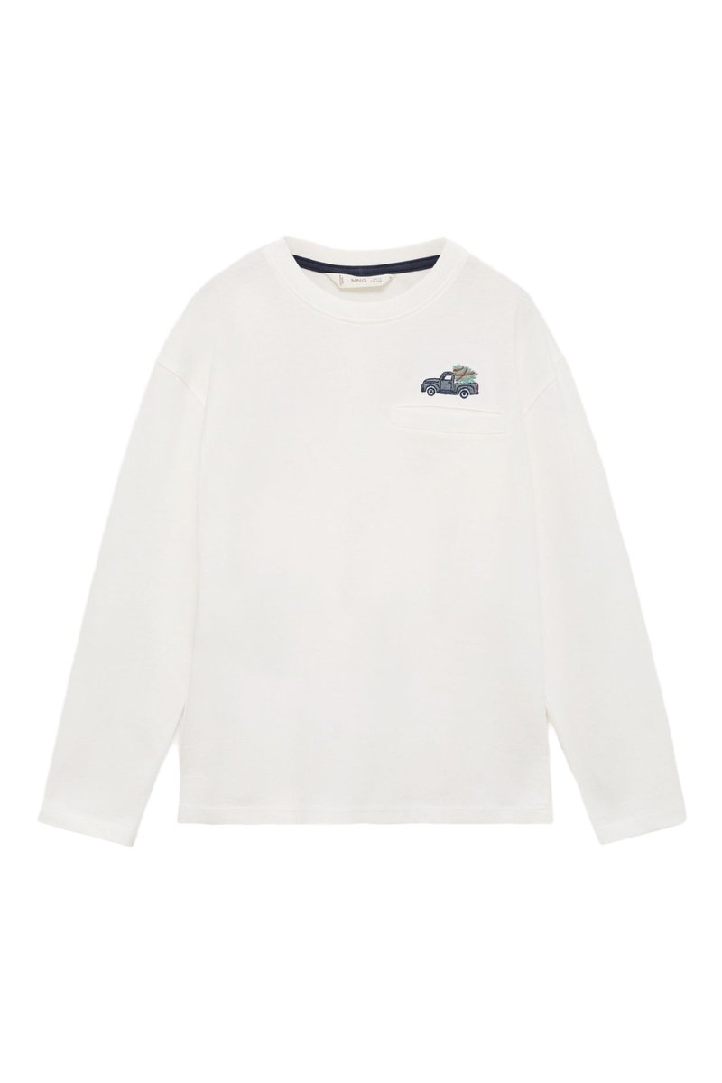 T-shirt coton détail brodé - Blanc cassé