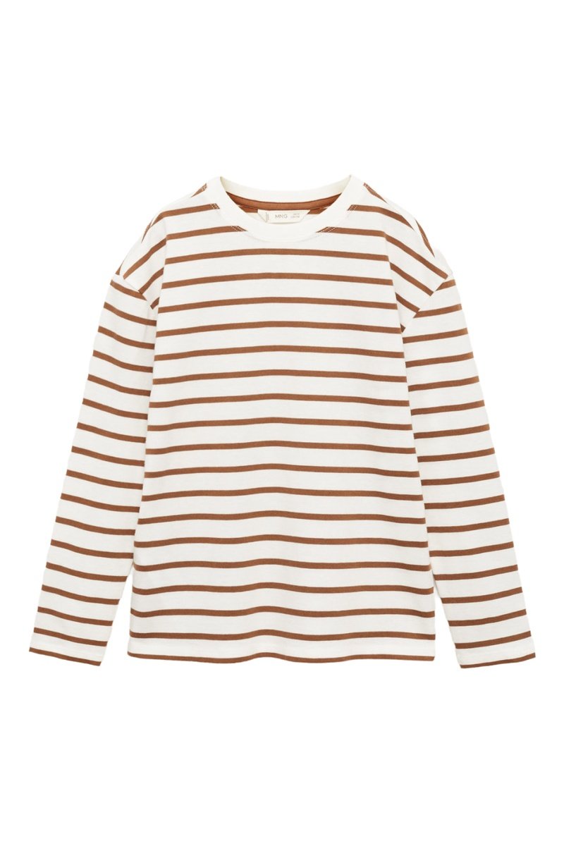 T-shirt manches longues rayures - Blanc et camel
