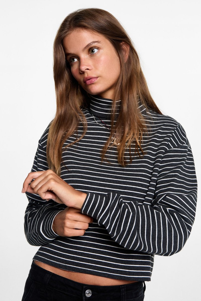 T-shirt rayures col roulé.