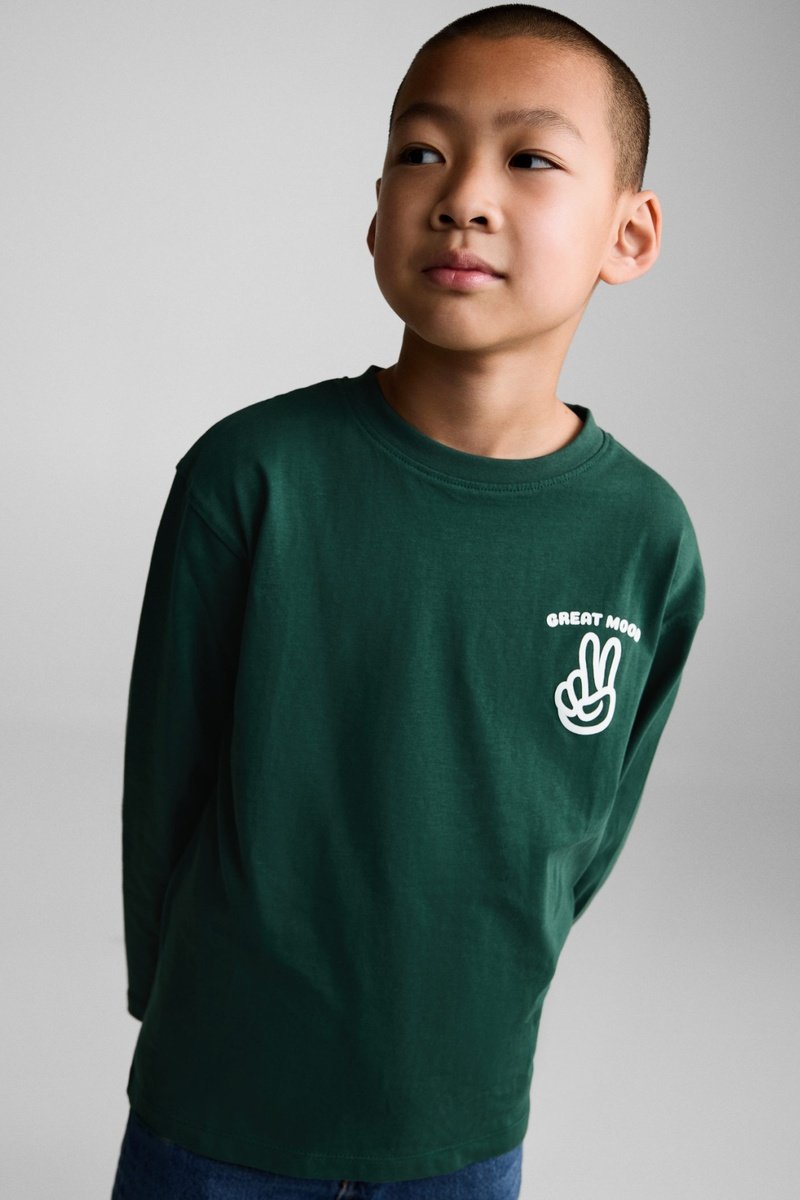 T-shirt manches longues imprimé - Vert foncé