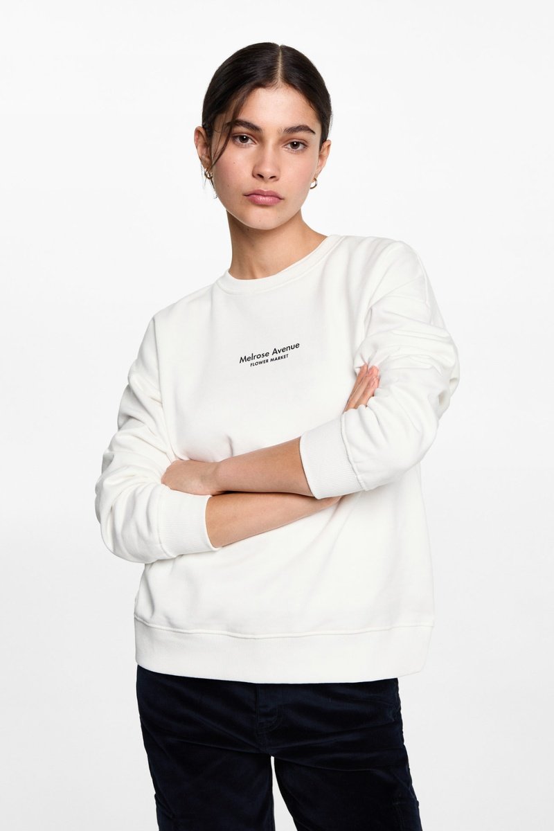 Sweat-shirt coton imprimé - Blanc cassé