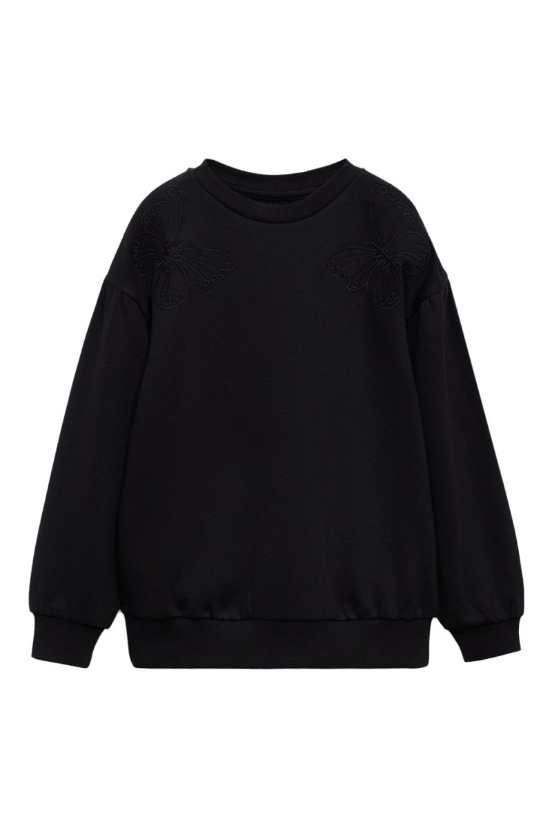 Sweat-shirt coton détails brodés - Noir