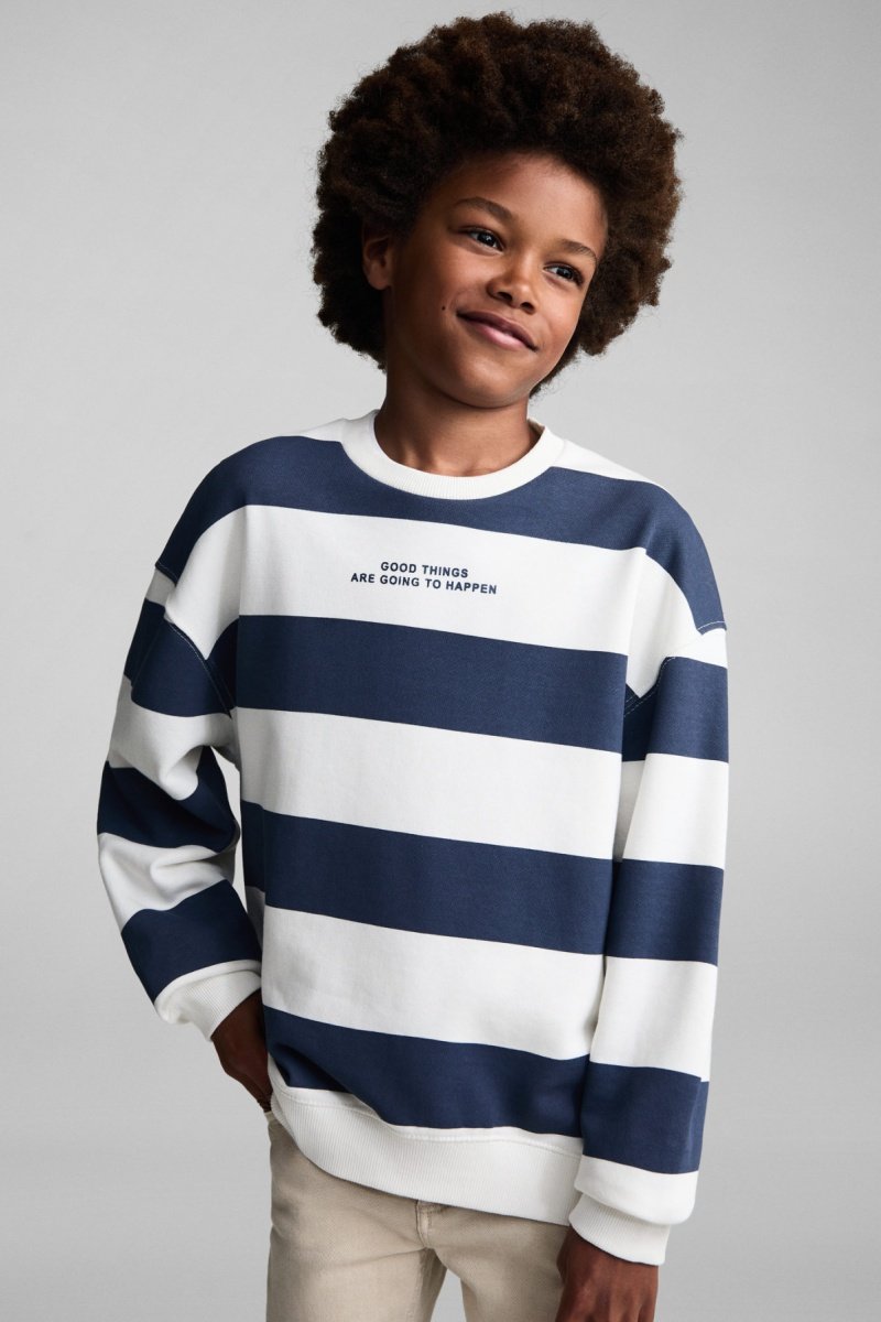 Sweat-shirt coton rayures - Bleu marine