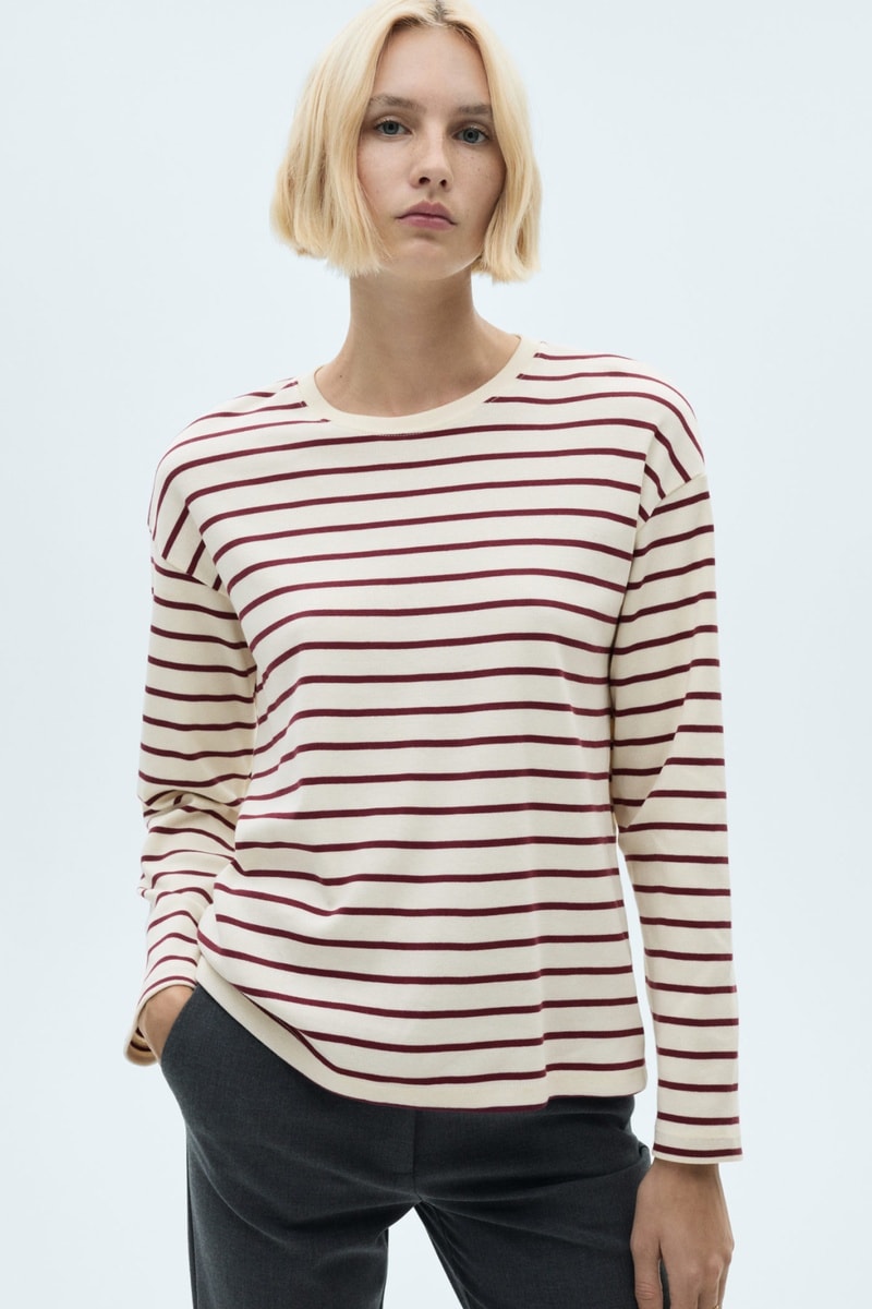 Sweat-shirt maille rayures - Bordeaux