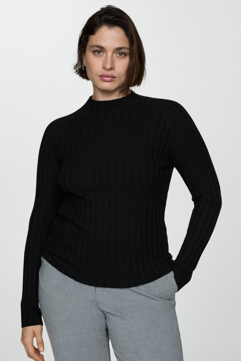 Pull-over côtelé col montant - Noir