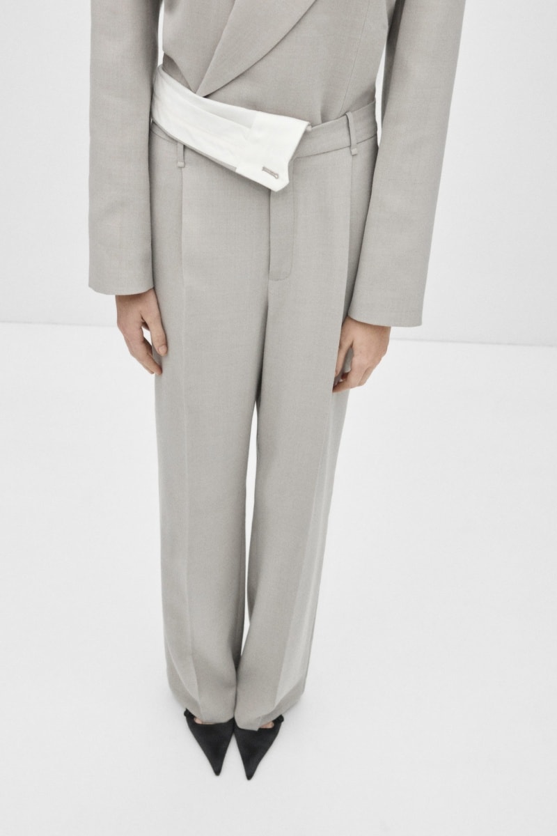 Fermeture éclair avec agrafe et bouton dissimulés.
