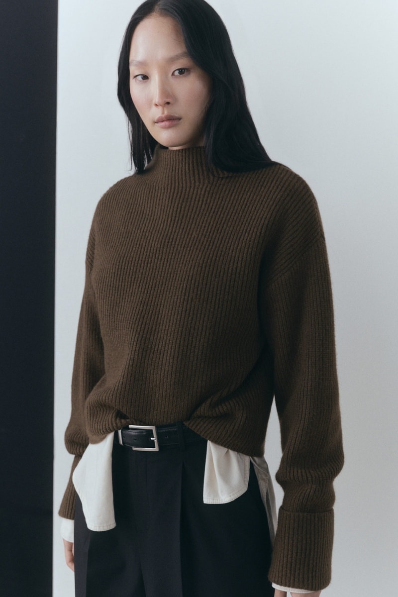 Pull-over côtelé col montant.