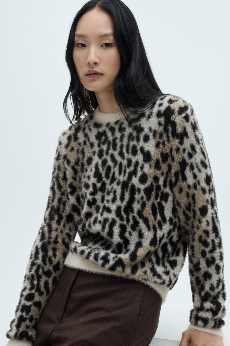 Pull-over fausse fourrure en imprimé animal.
