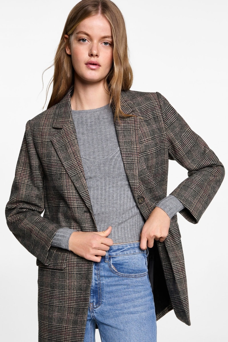 Manteau à carreaux en laine.