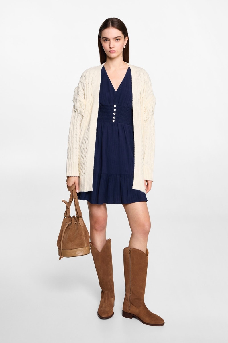 Cardigan maille torsadée franges.