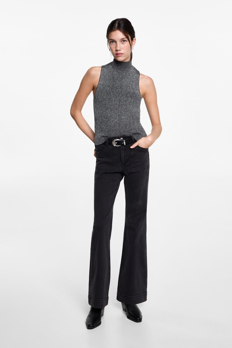 Top à col roulé en lurex - Noir