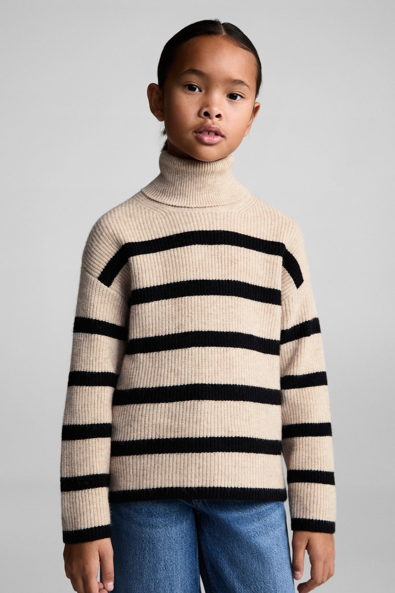 Pull-over rayé col roulé - Sable