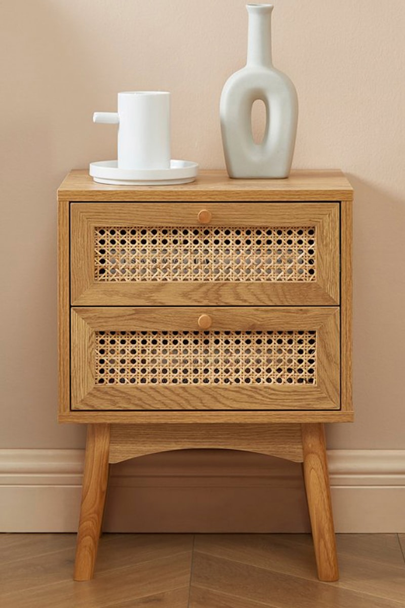 2 tiroirs habillés de cannage en rotin.
