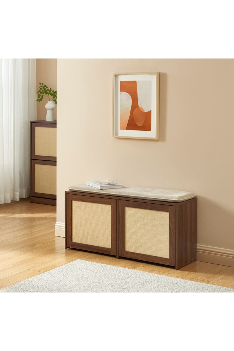 Meuble à chaussures 2 abattants en bois d’hévéa Haria - 100 x 45 x 30 cm