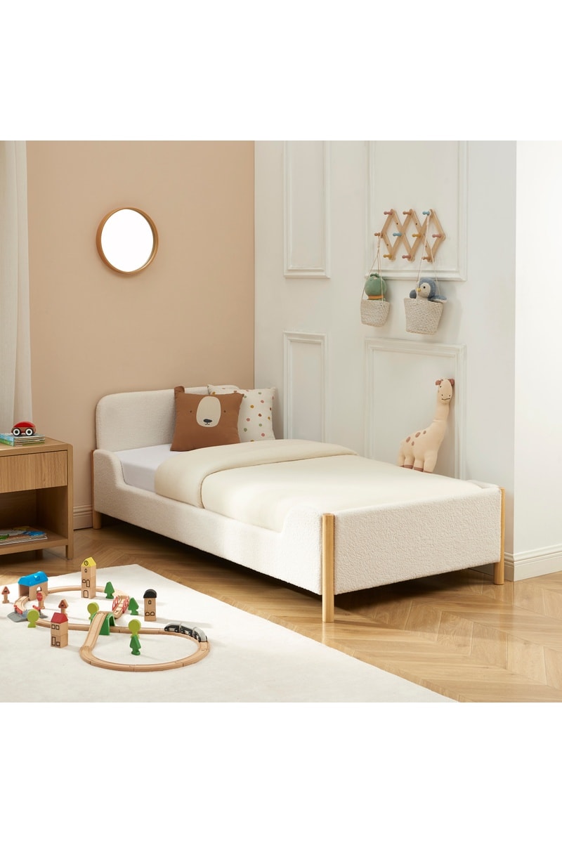 Entretien du meuble : pour entretenir la bouclette, utiliser une brosse douce afin d'enlever la poussière tout en préservant la texture du tissu. En cas de tache, la traiter rapidement en tamponnant délicatement avec un chiffon propre pour éviter d'endommager les fibres. Pour un nettoyage en surface, privilégier un produit adapté aux tissus délicats afin de préserver la qualité du matériau.