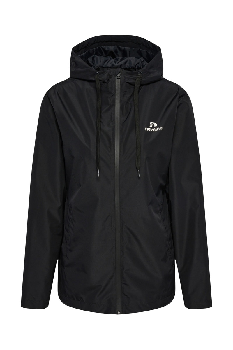 Coupe-vent à capuche avec liens de serrage à manches longues.