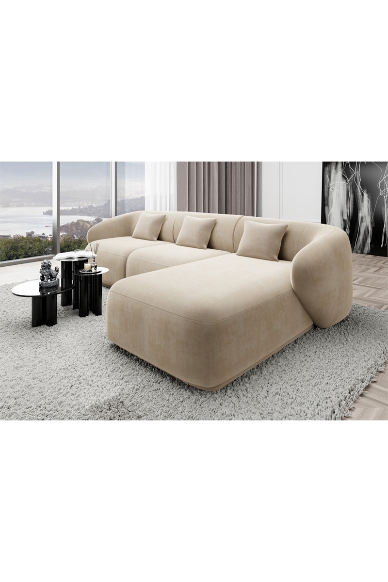 Canapé d'angle droit Maitano - Crème - 5 places - Tissu toucher velours