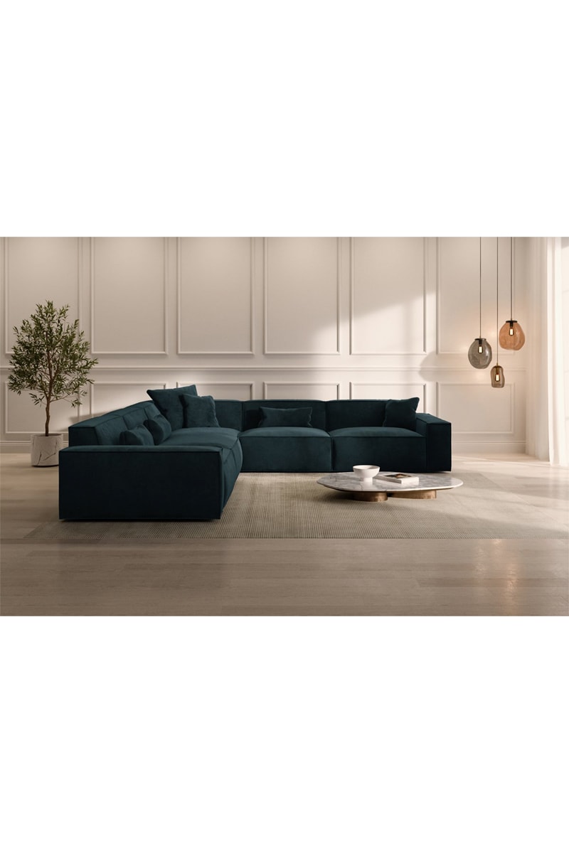 Canapé d'angle Lionel - Bleu foncé - 6 places - Tissu toucher velours