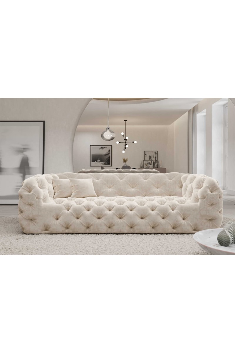 Canapé droit Honey - Crème - 3 places - Tissu velours