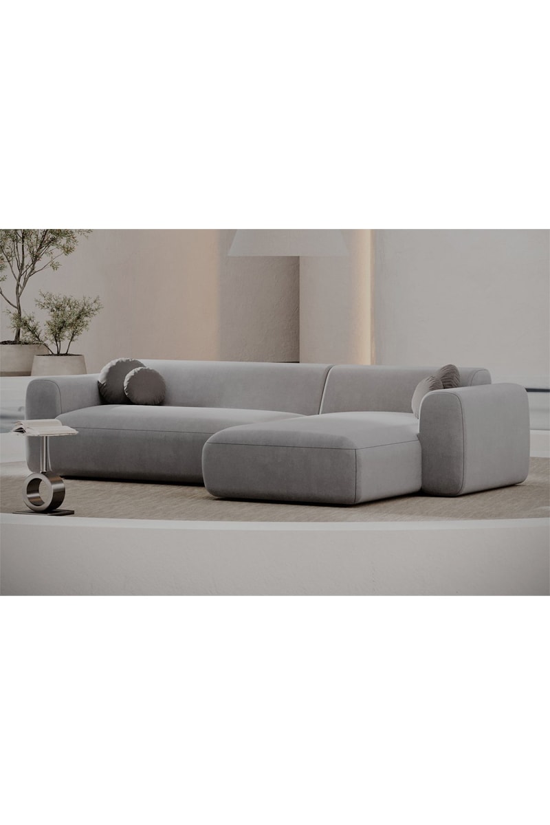 Canapé d'angle gauche Moloko - Gris clair - 5 places - Tissu toucher velours
