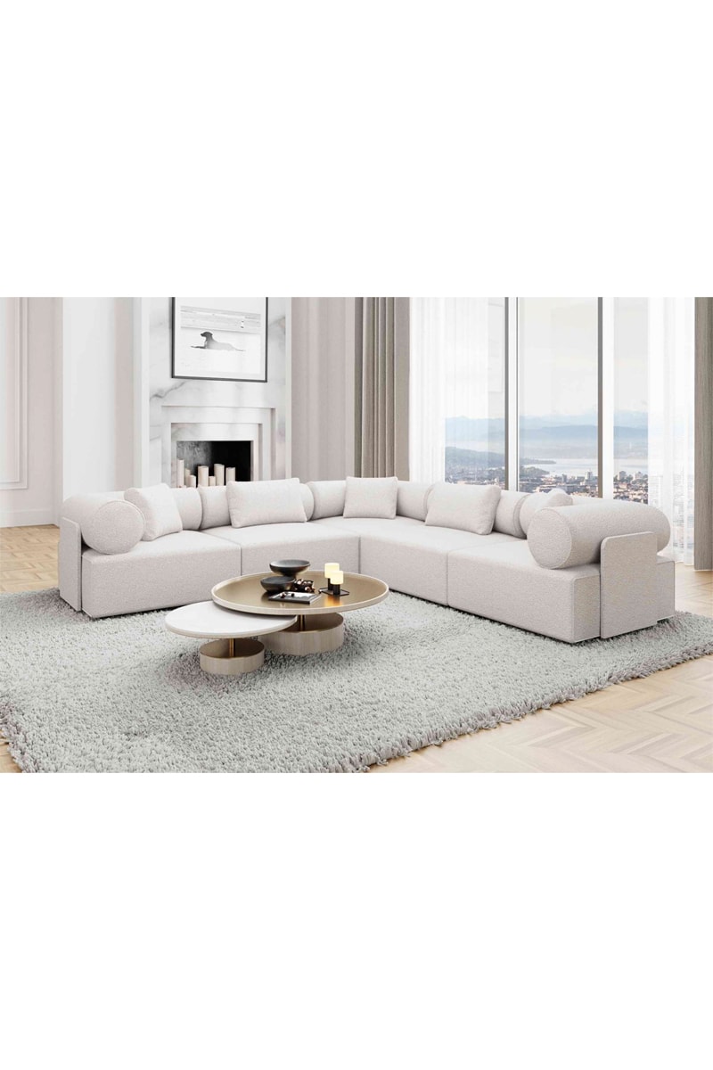 Canapé d'angle Form Ragusa - Blanc - 6 places - Tissu bouclette