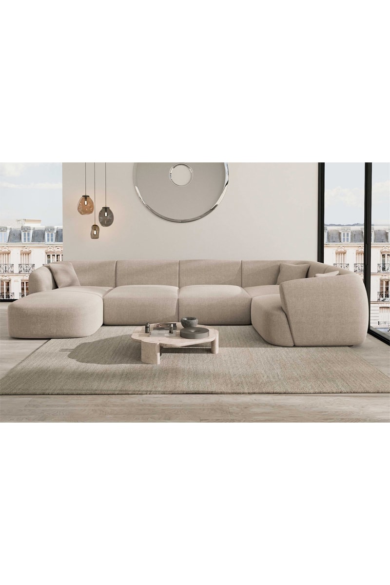 Canapé d'angle droit panoramique Ozura - Beige - 7 places - En tissu structurel