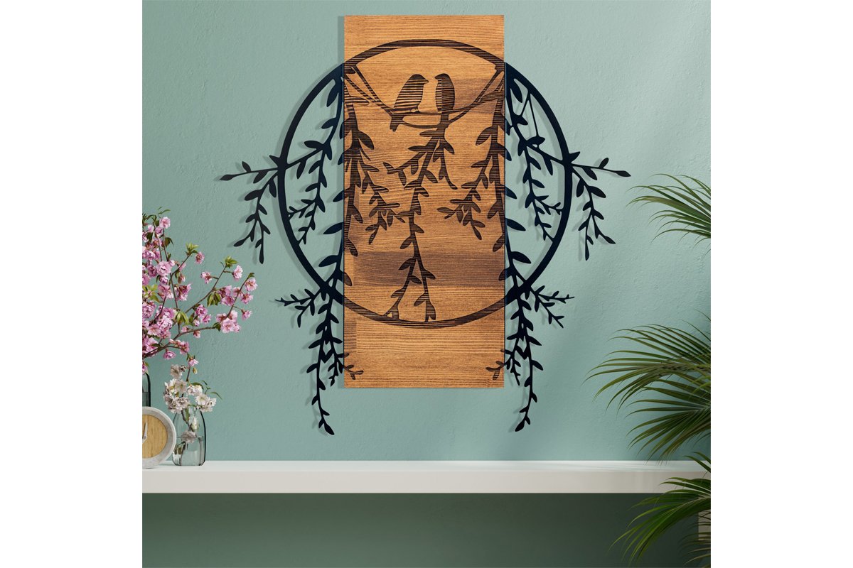 Décoration murale oiseaux amoureux en bois - 63,3 x 65 cm - Noir et naturel