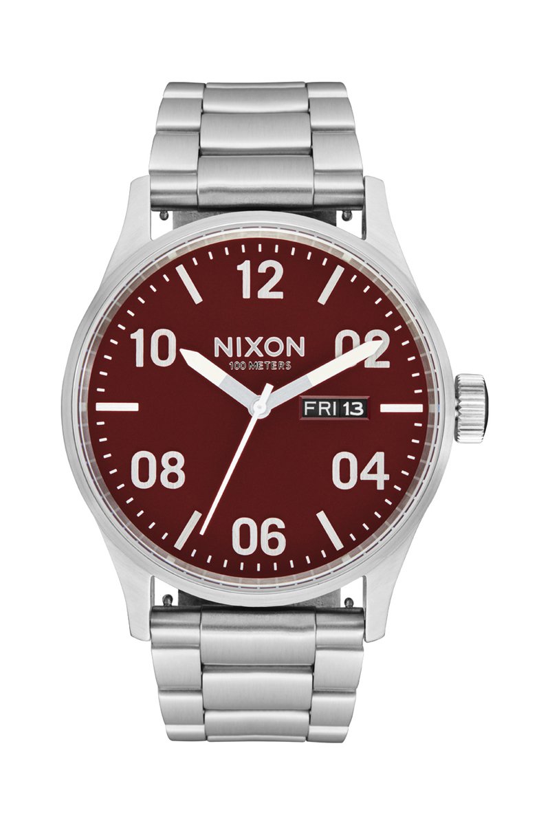 Montre à quartz en acier Sentry - Argenté et rouge foncé
